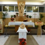 そして、22:30から近くの教会に出かけました。 友人がボランティアでこの教会で讃美歌の伴奏をギターでしています。 参列者は130人以上だったと思います。力強い声の神父様の説教は心に染み入るようでした。ミサは0:00過ぎに終わり、参列している子供たちも眠そうでした。ミサ後、一同は別室でクリスマスケーキ(パネットーネとパンドーロ)をスプマンテで頂きました。これがイタリアでは恒例のようです。ミラノもそうでした。