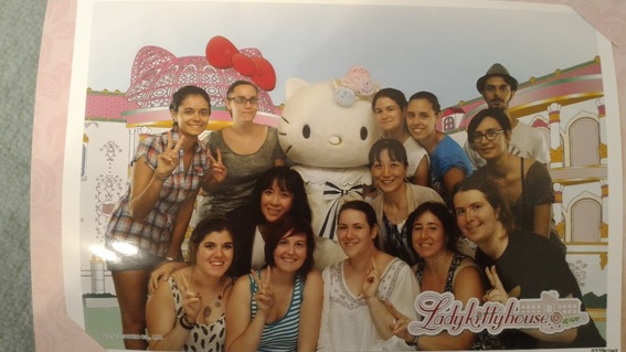 Abbiamo anche fatto una foto tutti assieme con hello kitty. È stato interessante.