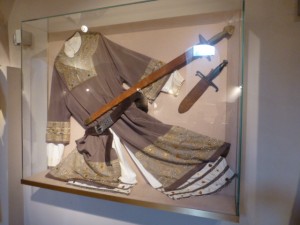 しかし、残念ながら当日は前日の晴天から打って変わった大雨で嵐のような日となりました。。この何十年間で初めての雨だそうで、しかもひどい雷。当然パレードは中止となり、1年かけて準備をしてきた市民の方々はさぞ落胆されていると思います。お城の中で展示されているパリオの歴史とその豪華な衣装、携帯品の数々を説明を受けながら、鑑賞しました。とても素晴らしい衣装を着用しての様は、さぞ豪華で歴史の趣きを感じさせたであろうと想像だけしました。