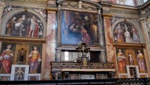 ある日の午前、オルガンの古楽コンサートに友人に誘われて行きました。内部のフレスコ画が見事で、ミラノ在住長い友人曰く、「かなり長い間修復してたわ。こんなに見事になったのね~」と感慨深い様子でした。