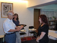 飛行機のチケットの関係で、Susannaさんが1日早く帰国しなくてはならなくなり、彼女だけの卒業証書授与式が前日の29日に行われました。今回のメンバーの中でもムードメーカーの一人だった彼女、卒業証書と記念品を受け取り、ニッコリの笑顔。全員で記念写真を撮りました。