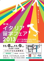 日伊協会では、イタリア文化会館およびイタリア政府観光局共催にて「第7回 イタリア留学フェア2013」を開催いたします。