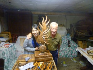 まだまだ出来上がっていなかった木彫りのオブジェが出来上がっていました。焚き火のようにくねくねと上に燃え上がる曲線と可愛らしいまん丸の組み合わさったそれはとても美しかったです。何よりも、お別れの前に見せてくれようと猛スピードで完成させ、こんなに遅くまで起きて、窓を開けて「ガッチャ!」と鍵の開く音を待っててくれたのかと思うと、涙がはからずもこぼれてしまいました(笑)。