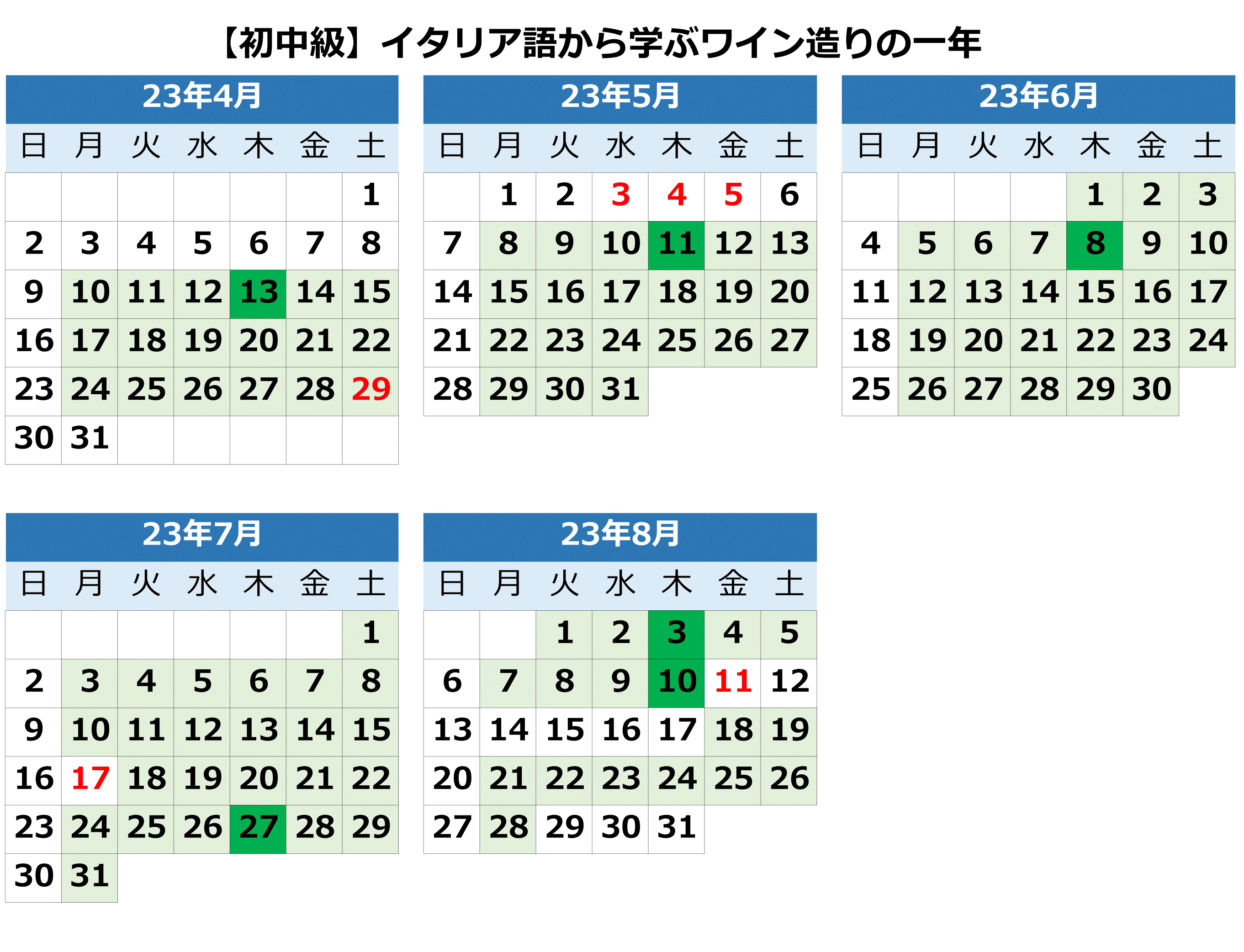 ワインを題材にイタリア語の知識を深める講座です。