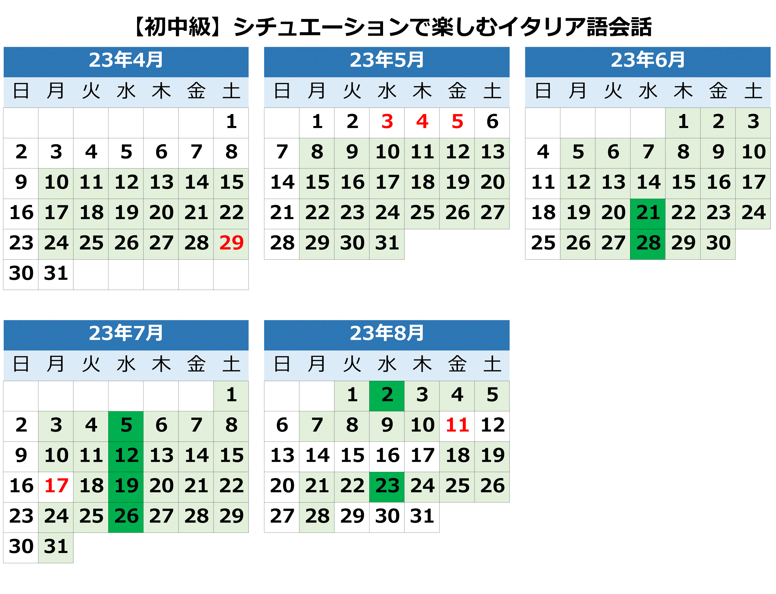 ●日程:6/21, 28, 7/5, 12, 19, 26, 8/2, 23