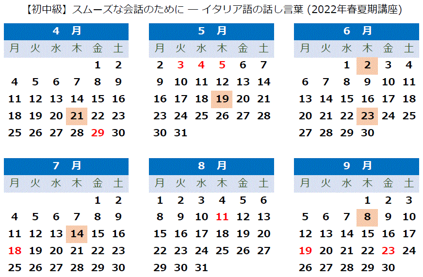 ★お申込みは、上記表中の申込欄の ★各講座・セミナーの【受講料】には、【会員】と【受講生/一般】の区別があります! ⇒会員ではない受講生の方は【受講生/一般】を選択してください。 現会員の方 ★現会員の方が、本講座・セミナーの会員割引を利用するには、2022年度会費のご納入が必要となります。講座・セミナー受講料と併せて、お支払い下さい。 新規入会ご希望の方 ★本講座・セミナーはどなたでも入会金なしに受講できますが、日伊協会の【会員】には春夏期、秋冬期のイタリア語講座受講料が1講座につき各1,000円割引の大変お得な会員価格を始め、文化セミナーの会員価格割引、等、様々な特典があります。(但し複数回に分割されている講座は1講座とみなします)。また、25歳以下の方はユース会員として、イタリア語講座(一部除外あり)が半額になります。本講座と同時に入会申込も可能です。この機会にぜひご入会をご検討下さい。 日伊協会の会員特典とお申し込み(継続を含む) |